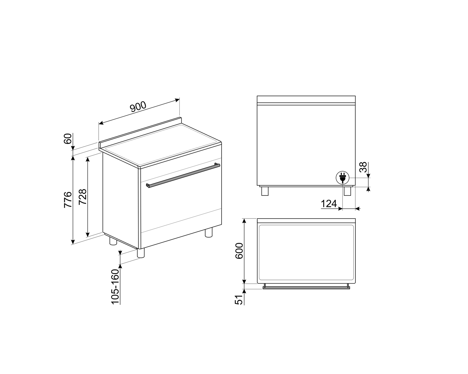 بوتاجاز كهرباء ٩٠ سمخمسة عيون كهربائيةفرن كهرباء سعة ١٢٦ لترثمانية وظائفنظام تبريد للجسم الخارجىمروحة ثنائية