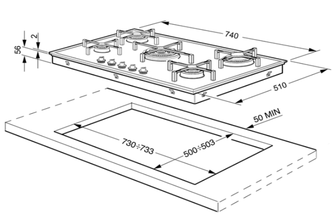 مسطح غاز من الزجاج الجرافيتي ٧٠ سمخمسة شعلات اشتعال إلكتروني تلقائيصمام امان كاملحمالات من الحديد الزهريعمل على الغاز الطبيعى و المسال